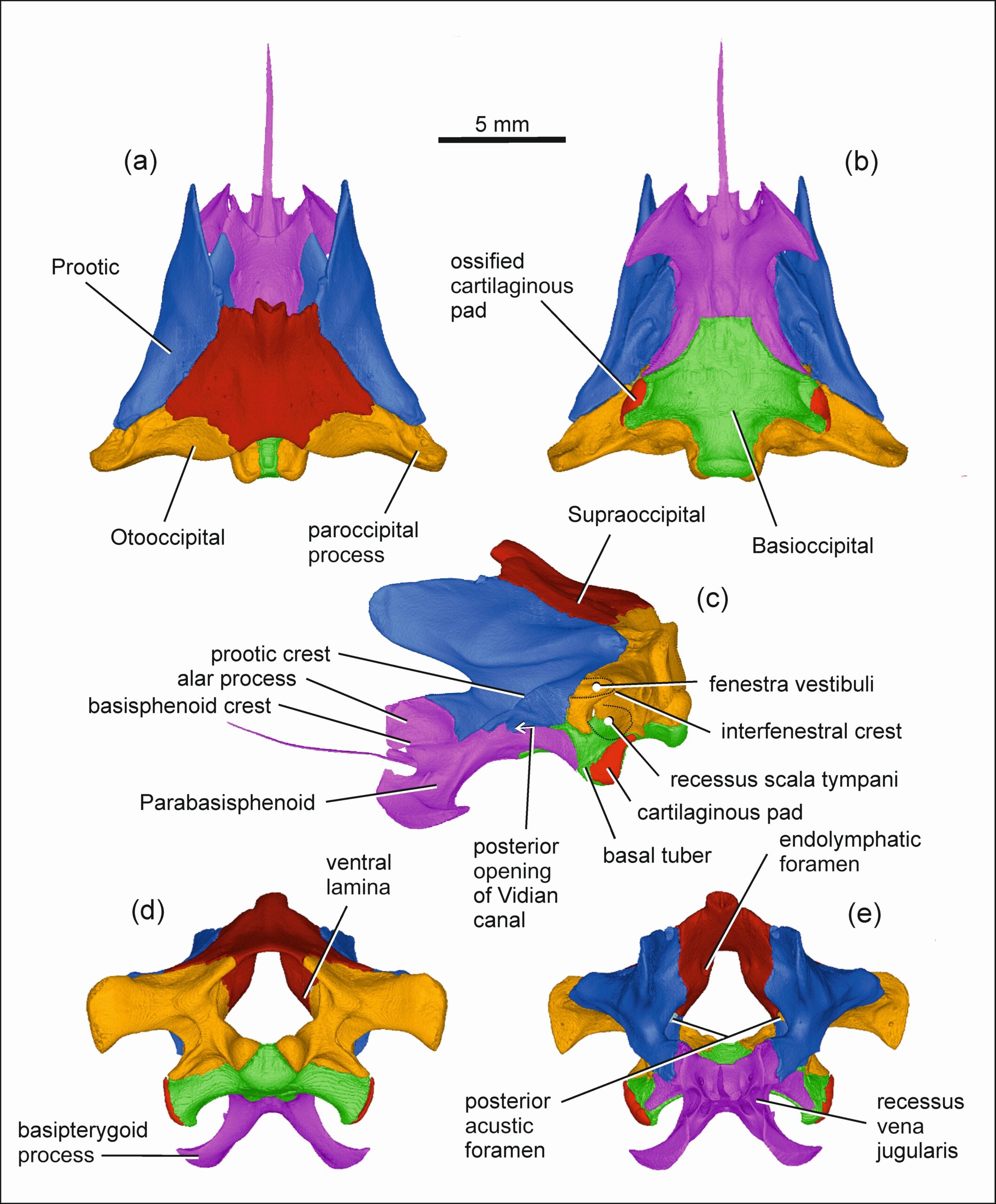 Fig.: 3D models of the ossified skull of Pseudopus apodus obtained by segmenting image data from microtomographic measurements